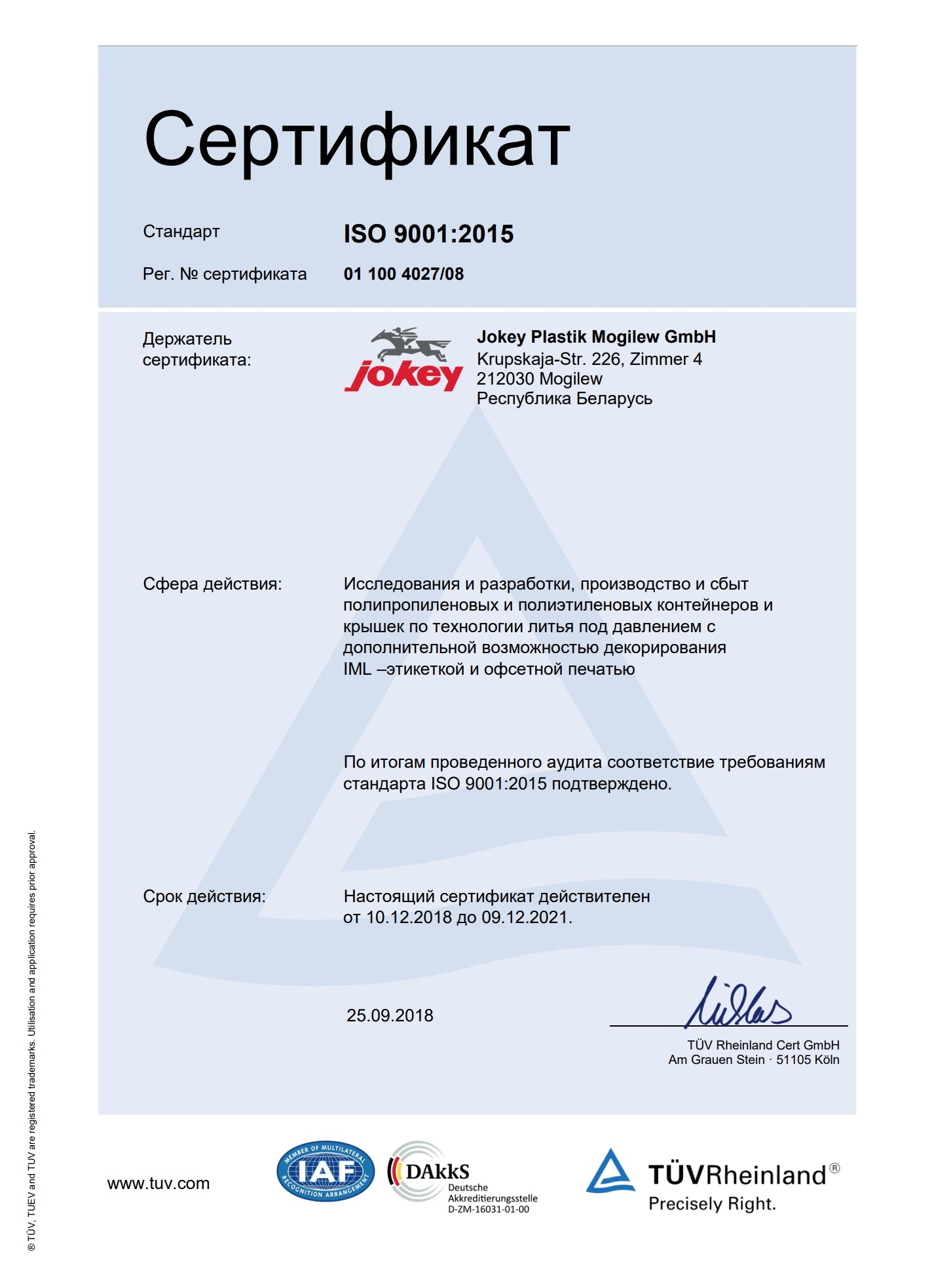 Сертификат соответствия ISO 2021